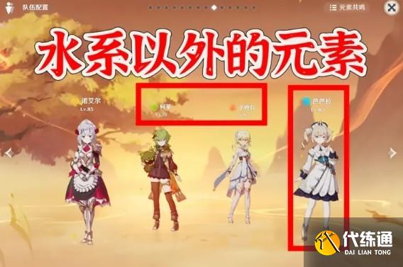 但是注意,同樣在水池里的隊友也會掛水,別帶會給自己上元素或附魔的角色,比如【六命班尼特】
