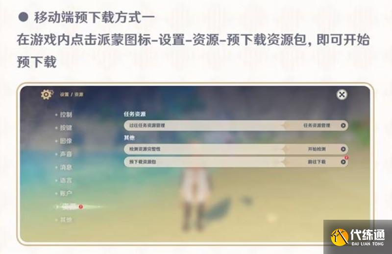 在游戲內點擊派蒙圖標-設置-資源-預下載資源包,即可開始預下載。