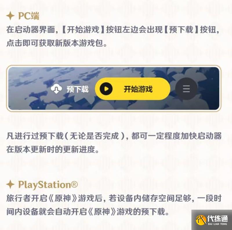 為了方便玩家提前下載更新資源,官方已經開啟了移動端、PC端以及PS端的預下載功能。以下是詳細的更新方式匯總: