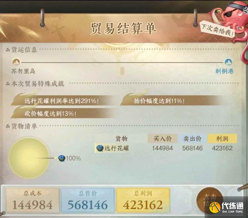 海舶令的利潤是隨機刷新的,我這周是高級海舶令25萬+20萬+15萬,這周真的特別非