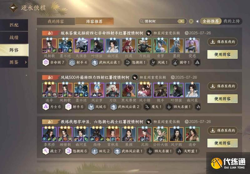 一共七套常用陣容,搜情柯柯直接導入即可。
