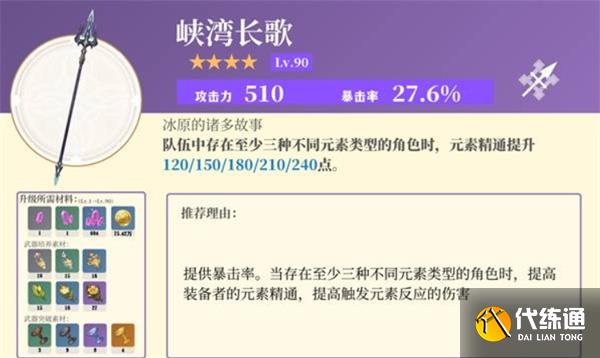 特效:觸發(fā)元素反應(yīng)后提升攻擊與元素精通。