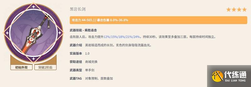 黑巖長劍在90級時(shí)的基礎(chǔ)攻擊力為565點(diǎn),這個(gè)數(shù)值在四星單手劍中屬于較高水平。同時(shí)它還提供了36.80%的暴擊傷害加成,對于依賴暴擊的輸出角色來說是個(gè)不錯(cuò)的屬性加成。這兩個(gè)核心屬性讓它成為不少輸出型角色的備選武器。