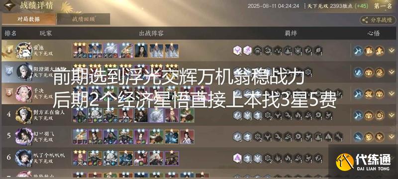 注意:需要開局選到【藍色心悟 - 浮光交輝】時才建議玩此陣容,此陣容不需要重鳴轉職也可以輕松吃到分