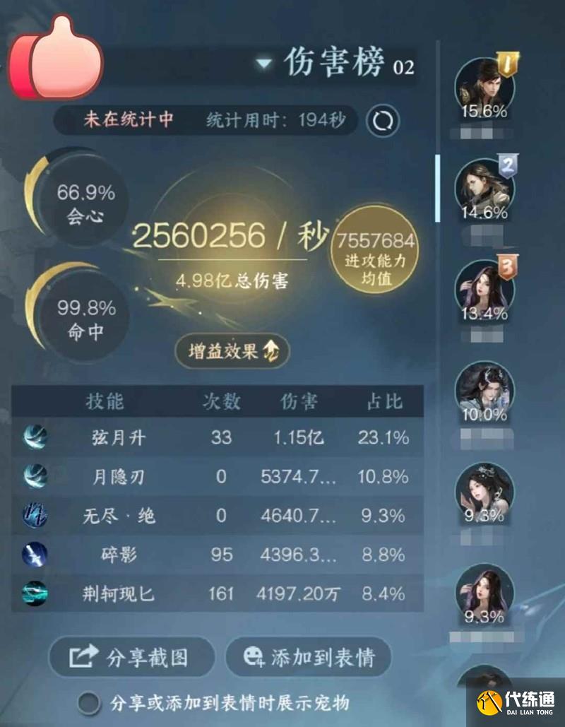 本周最高燃心等級:55級,碎夢月光流迎來最終形態(流星追月),圖一是被削后的n12牧野彌結算,依舊抗打,不過月隱刃占比少了很多,弦月升起飛了!