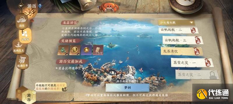 游歷-風雅宋做龍荔清飲與荔貢之災都可獲得額外金幣