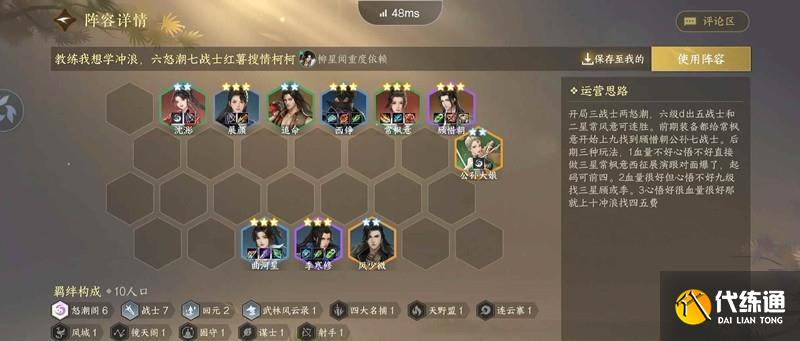 推薦三星三費:冷血(搭配四刺),刀狂(搭配心悟),高衙內(搭配五輔),曲星河,楚相玉,鳳千錦,紅蓮