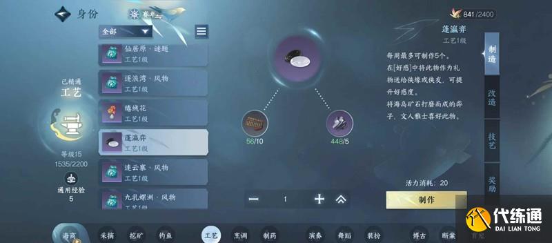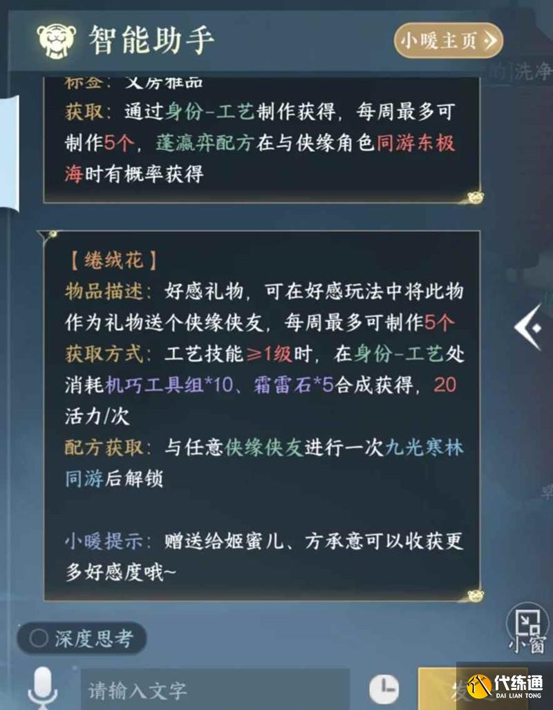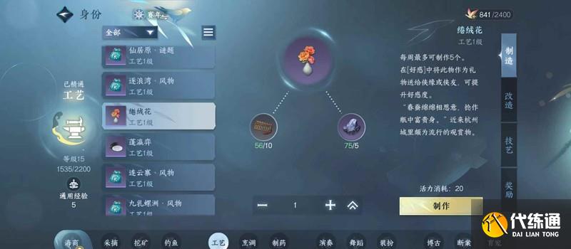 其次,務必解鎖工藝1級配方中的蓬瀛弈和綣絨花,每周可各制作五個,它們能增加大量好感度。(一定要做)