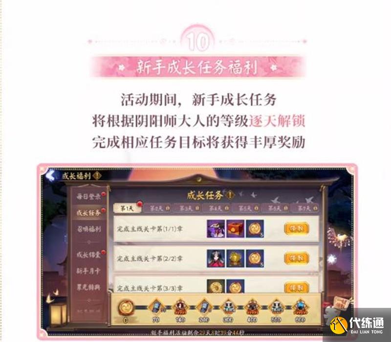 活動期間,新手成長任務將根據陰陽師大人的等級逐天解鎖,完成相應任務目標將獲得豐厚獎勵。