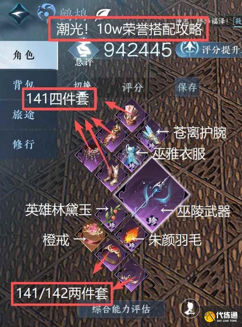 下身裝備:143橙戒+朱顏羽毛(身法)+英雄林黛玉+141/142兩件套