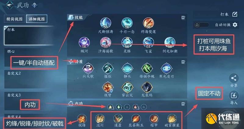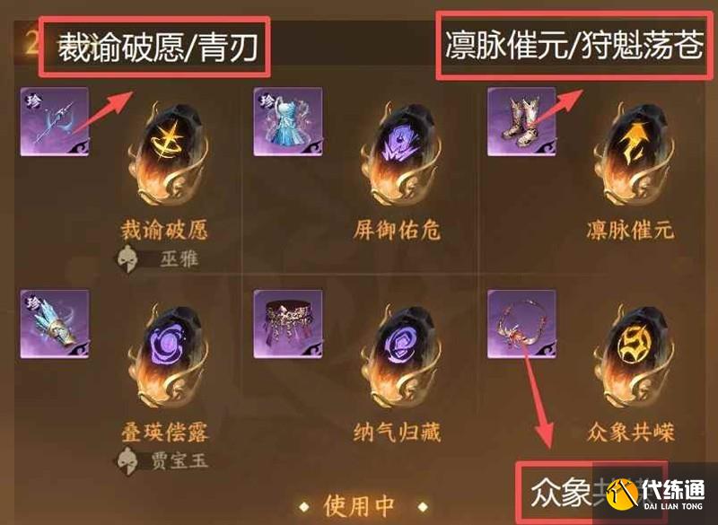 破霄/昆吾/熔甲/逢虛/汲川五個內功固定不動,最后一個從灼鋒/銳鋒/掠時紋/破戟當中選擇詞條最好的來開三金三火一木周天即可