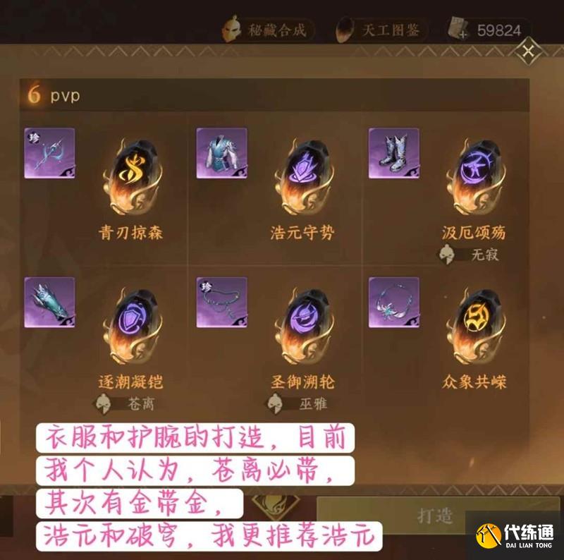 3.打造 : 護腕和衣服位置,優先帶蒼離,其余有金帶金。
