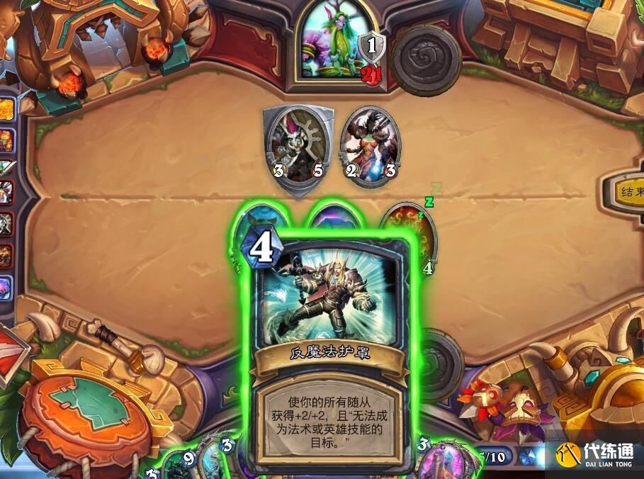 反魔法護(hù)罩是所有鋪場職業(yè)的最愛,4費可以BUFF所有隨從,+2/+2還能讓他們避免成為英雄技能或法術(shù)的目標(biāo)。尤其當(dāng)場上有大哥隨從的隨從,一張BUFF下去,個人只能大喊一句舒服。當(dāng)然,除非你臉很好,至少筆者是召喚了多次巫妖王之后,好不容易才見到了這張卡牌。