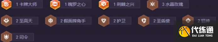 1卡牌大師、1魄羅之心、1荊棘之興、3水晶、2至高天、2假面、2護衛、2圣盾使、2狙神、2司令