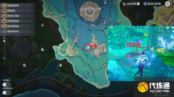 在自體自身之塔較低處進入(有發條魚和寶箱),前往塔中心處迸入密室。