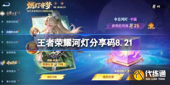 王者榮耀開啟了燃燈寄夢活動,可以獲得限時點券。在活動中玩家可以完成活動來獲取一定的限時點券,通過其他玩家分享的河燈分享碼可以獲得更多的點券。那么王者榮耀河燈分享碼有哪些呢?下面一起來看看王者榮耀河燈分享碼大全8.21吧。