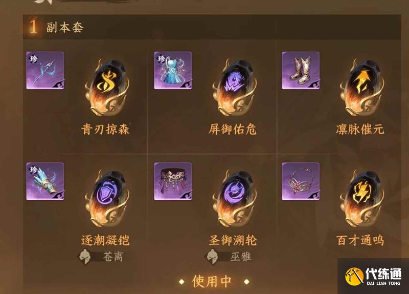 套路一:巫雅?素璃凈蓮袍(團本老六)+ 蒼離?鯨鱗碧濤腕(團本老二)+百煉四件套
