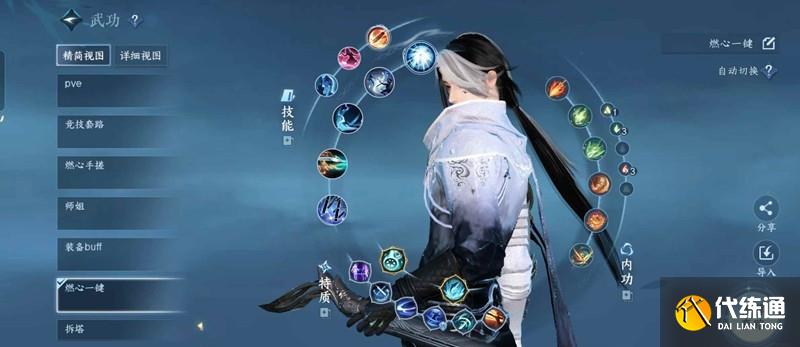 主要技能節(jié)點為:碧血丹青(坤)-竹子(震)-荊軻(坤)-百裂(震)-入夢(坤)-碎影(乾)-三影(乾),剩下的剎那(離)-流星追月(坤)都是點了不帶技能主要是吃五維和流星的月光增傷哦