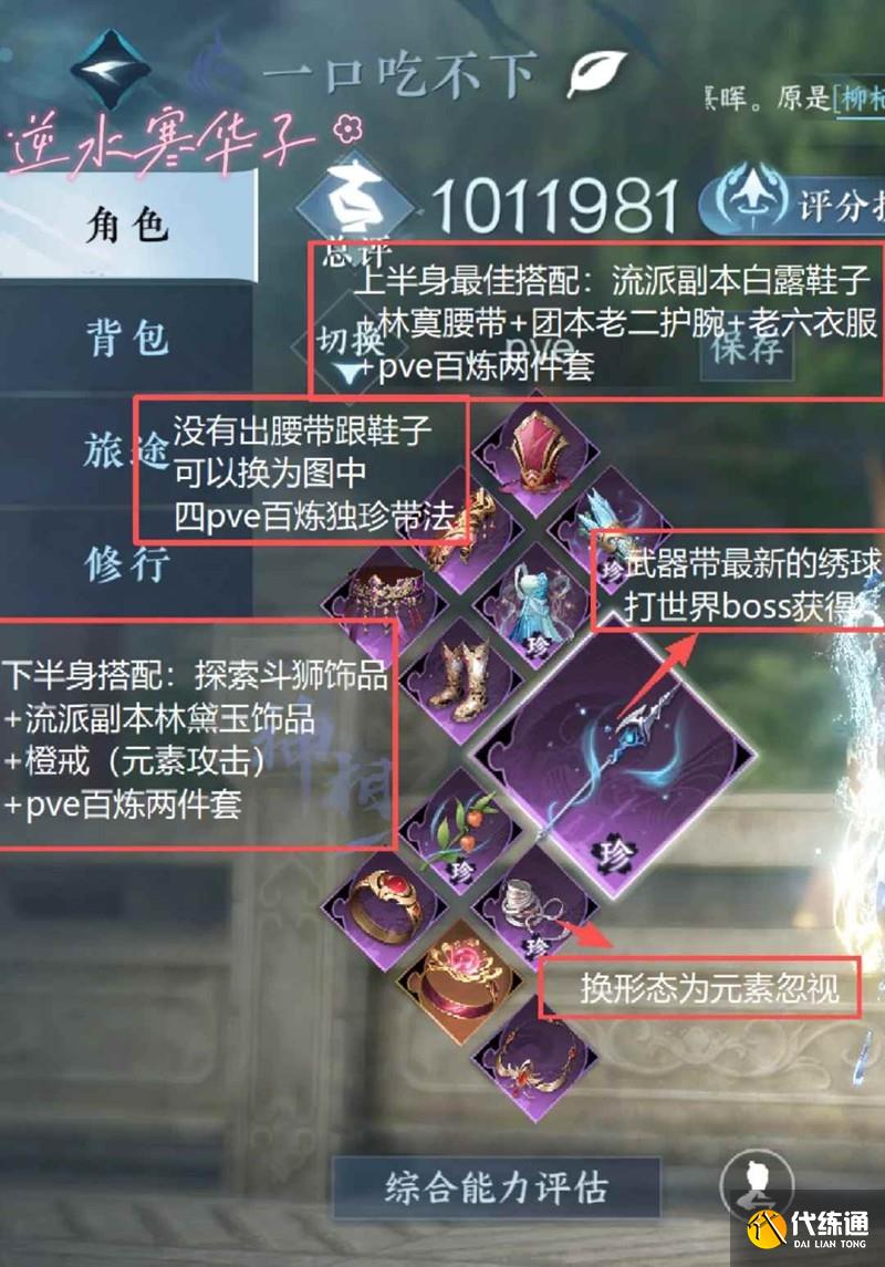 上半身最佳搭配:流派副本白露鞋子+林寞腰帶+團本老二護腕+老六衣服+pve百煉兩件套