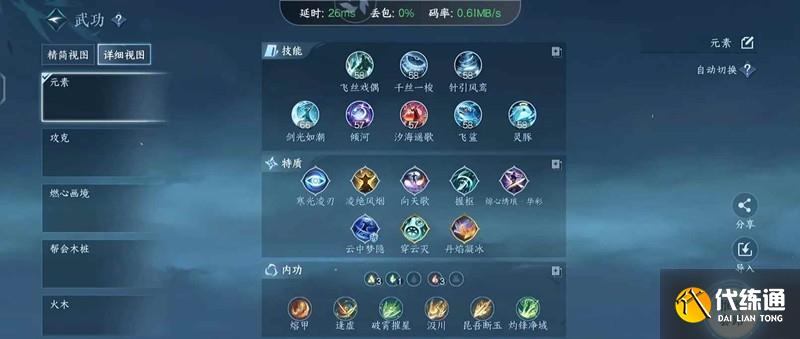 小特質如圖照抄即可,忽視抗1w+時用玄機大特+神相大特,小于1w則玄機+龍吟大特,部分號可嘗試神相改劍心+靜水,站樁面板建議元素攻1.75w+會心1.7w+
