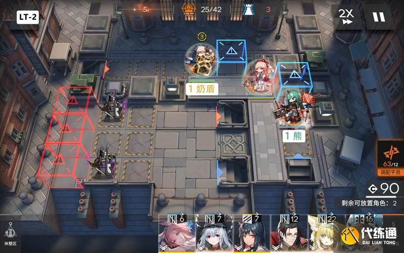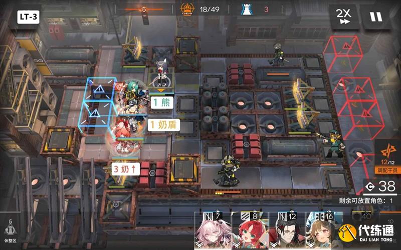 第二關:兩個藍門疊兩個重裝即可,上面奶盾下面星熊,可以中間加奶或輔助,疊的慢可下投鋒。