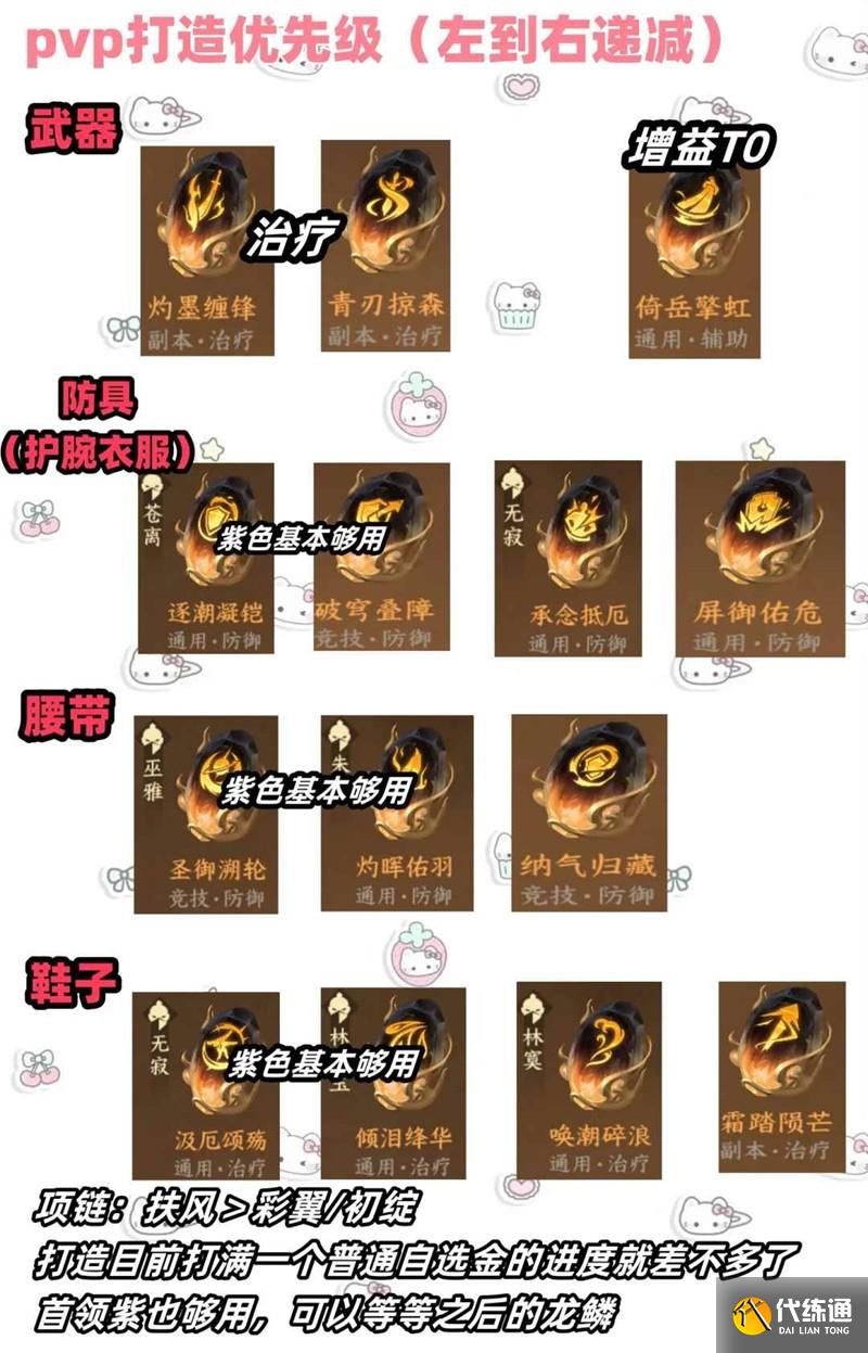 輸出人傷套基本不帶技巧克制,可以帶斗獅·百戰纏巾應對個別用技巧克制的輸出職業。也可以替換為氣盾獨珍項鏈(既為抗壓套),橙戒替換為145pve橙戒提升奶量。