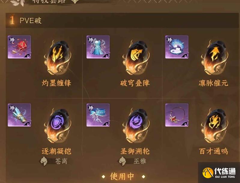最優:林寞·遺珠承潮帶(流派老三)+白露·溯夢聞音貝(流派老一)+巫雅?素璃凈蓮袍(普通團本老六)+ 蒼離?鯨鱗碧濤腕(英雄團本老二)+百煉兩件套件套