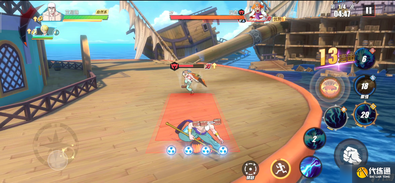 心屬性伙伴中,狙擊王的【沖擊彈】、黑足·山智的【三級絞肉】(奧義加持下)以及喬巴的【重量強化·摔擊】都是具有控制效果的,實戰中可以合理利用。