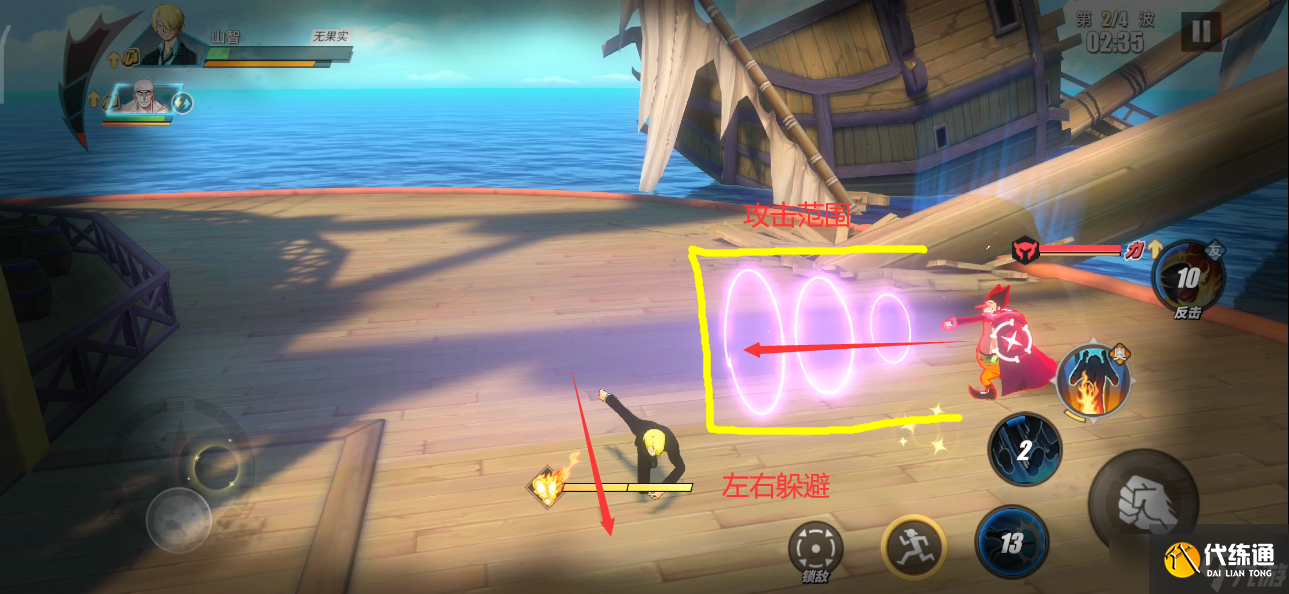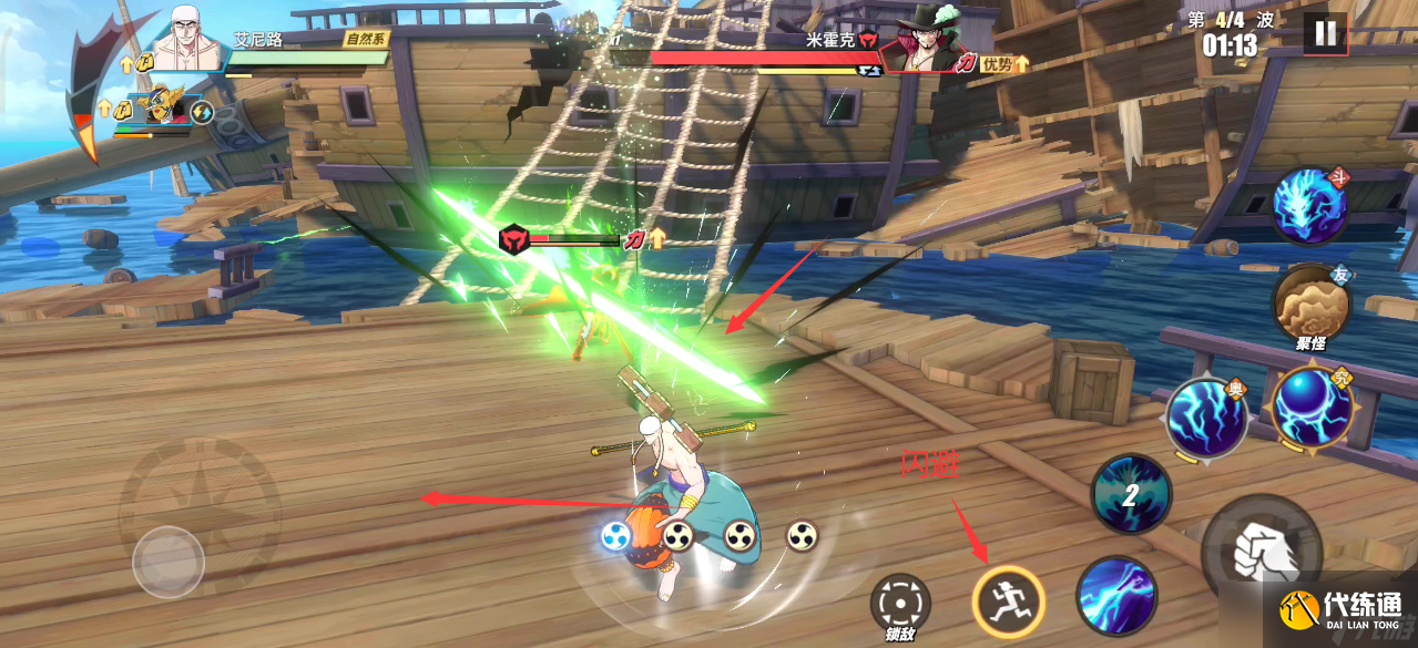 躲避技巧:這個技能要么選擇吃第一段攻擊后,倒地無敵躲避;要么直接往相反方向閃避。在閃避能量充足的情況下,我們也可以多次向后進行連續閃避。