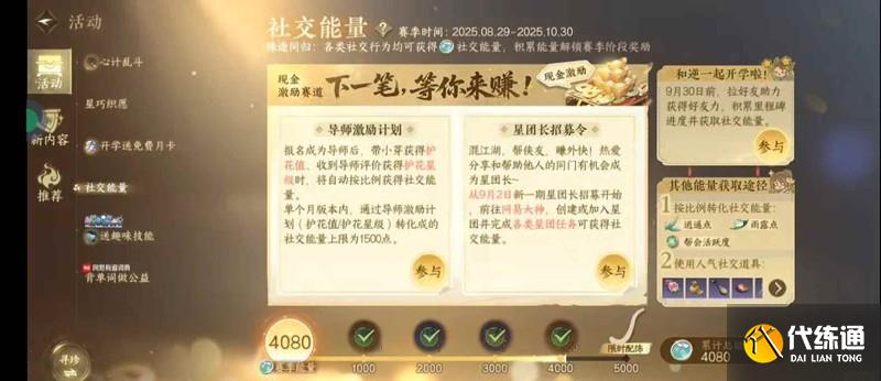 6.可以通過星團長做任務獲得社交能量,每周更新后都可以做