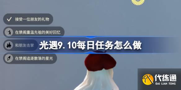 光遇今天的每日任務(wù)刷新在禁閣,大家知道今天9月10日的具體任務(wù)信息和做法流程嗎?下面為大家?guī)砉庥?.10每日任務(wù)怎么做的具體內(nèi)容和方法,感興趣的玩家們千萬不要錯(cuò)過哦!