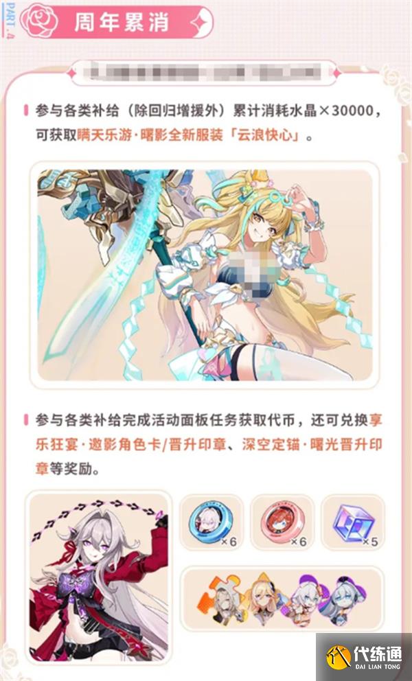松雀泳裝皮膚:周年慶期間累計消耗水晶達標即可免費領取。
