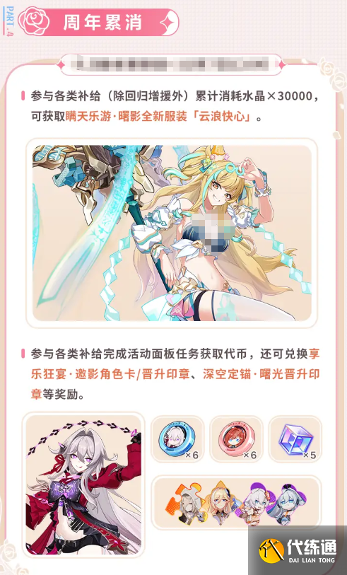 在活動中玩家可以獲取一個周年慶的專屬禮盒,在周年慶期間累計消耗達到指定數量的水晶,就可以免費領取一個松雀泳裝皮膚,皮膚有著非常美麗的夏日氛圍,此外在游戲中還上線了多個限時的主題活動,每個主題活動都有獨特的玩法,完成這些活動不僅可以獲得各種限定皮膚和外觀,還可以獲取水晶和各種角色的養成材料,有些活動會有劇情章節,可以通過參與到故事中去了解到游戲世界的世界觀。