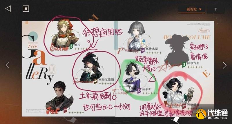 最近版本強(qiáng)力主c: 艾吉奧、露西(電能主c限定角色今年抽不到)、諾諦卡(薪血主c,周年慶限定抽不到)。