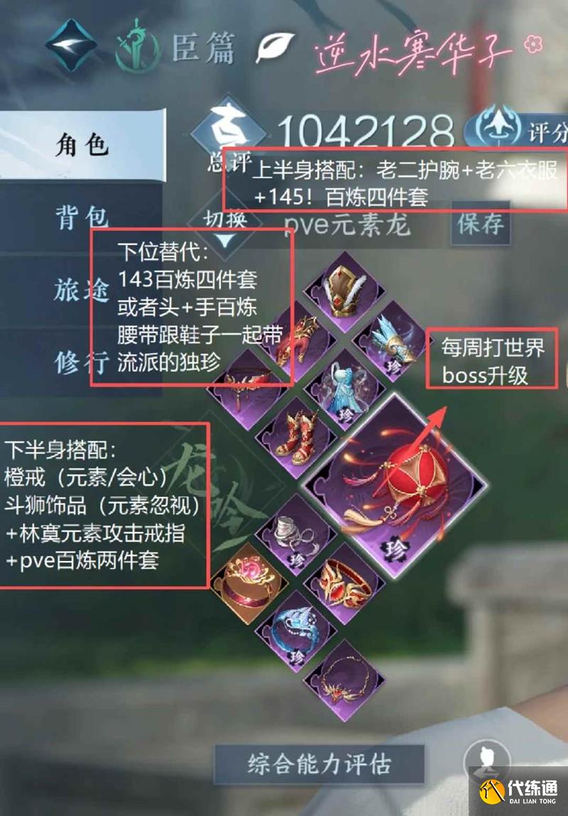 下半身搭配:橙戒(元素/會心)斗獅飾品(元素忽視)+林寞元素攻擊戒指+pve百煉兩件套