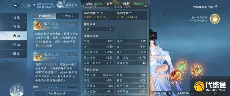 內功詞條選擇:全元素攻,潮生宮元素,氣海,身法,命中,會心,攻擊,首領克制,大小攻,破防在元素流收益較低,破防過多會導致融甲變為破防效果