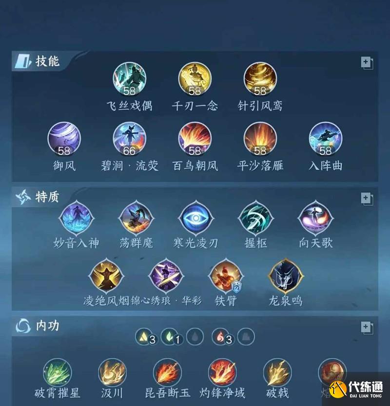 技能特質內功。新絕技必抽滿,新群俠推薦抽滿,比尺斷提升約1500~2000。測下來鳳城小特質帶華彩更好;百家帶千刃一念比鳳城扇子傷害更高,高約500~1000秒傷。