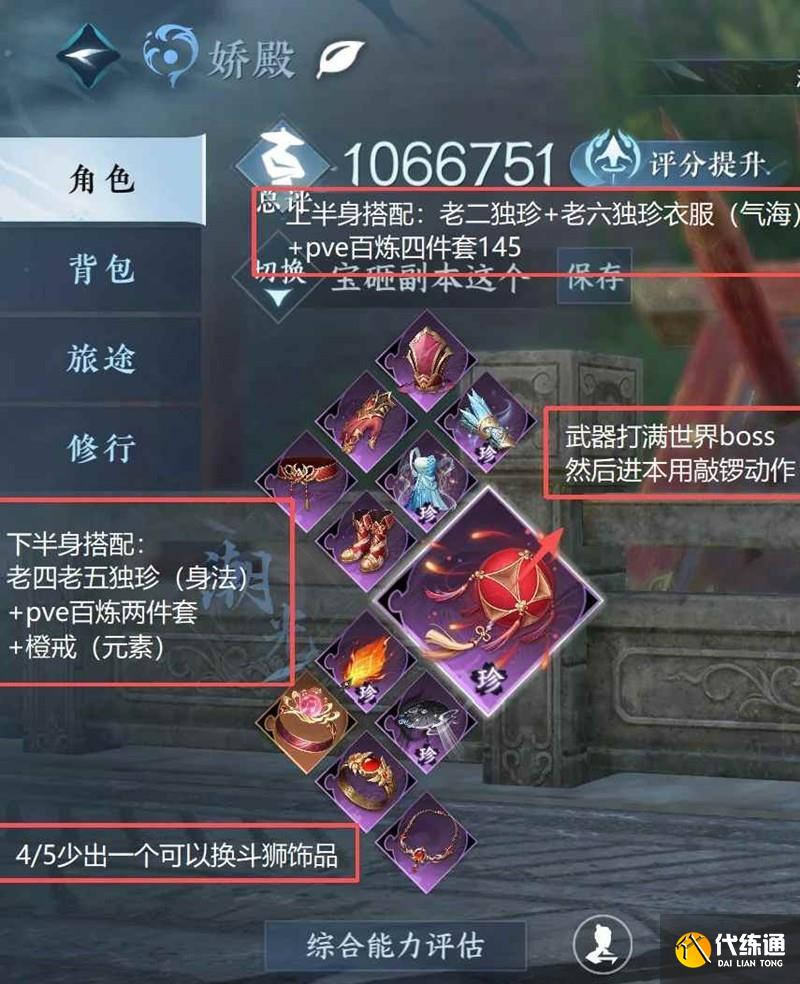 下半身搭配:團本老四獨珍+團本老五獨珍+橙戒+pve百煉兩件套(橙戒洗元素/會心)