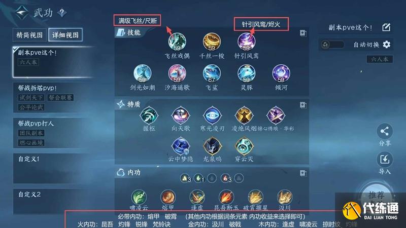 必帶內功:熔甲 昆吾 破霄(其他內功根據詞條元素選擇即可 點內功小問號查看收益)