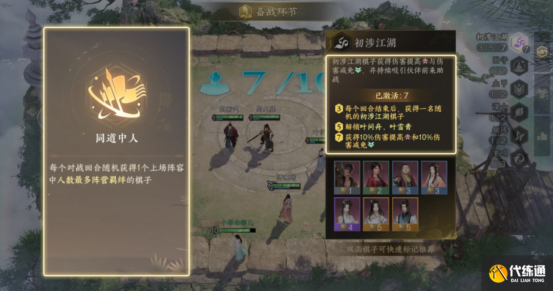 ①例:初涉江湖的羈絆效果,配合心悟“同道中人”,可以更加方便地獲得同羈絆棋子,讓棋子快速升到高星級!