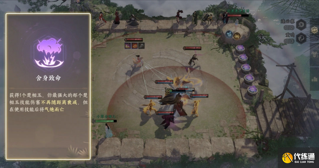 ②例:楚相玉配合心悟“舍身致命”,在對戰中可對全場范圍造成高額傷害,瞬間改變局勢!