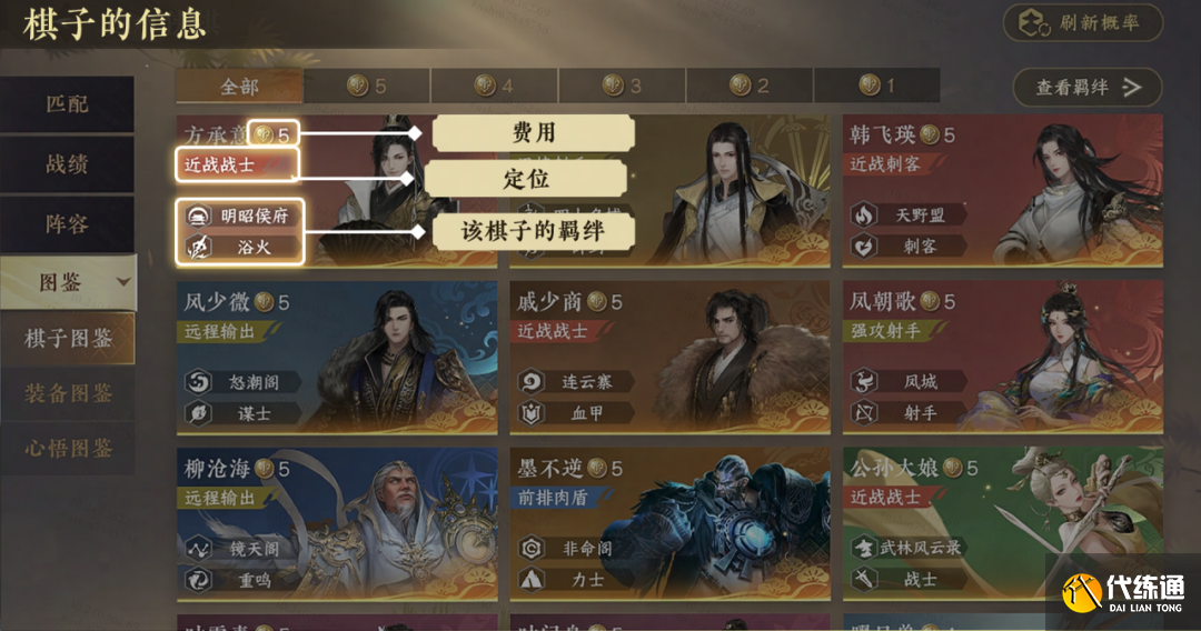 ①棋子費用與品質:品質越高費用越高(分為1-2-3-4-5金幣,對應灰-綠-藍-紫-金),費用越高戰力越強