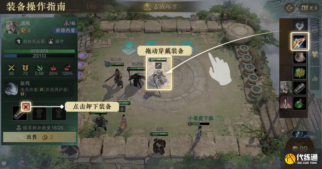 額外注意,當戰斗開始后則無法將裝備卸下來了哦~