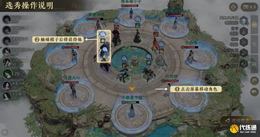 選秀環節時,玩家依次上前選擇自己想要的棋子。血量越低越先操作。點擊屏幕移動角色,觸碰到棋子后可以獲得該棋子。