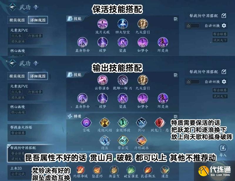 假如需要保活,把躍龍門和逐浪 替換為 孤身破陣和向天歌即可,不推薦防守團,在上更多的防御特質,單防足夠了