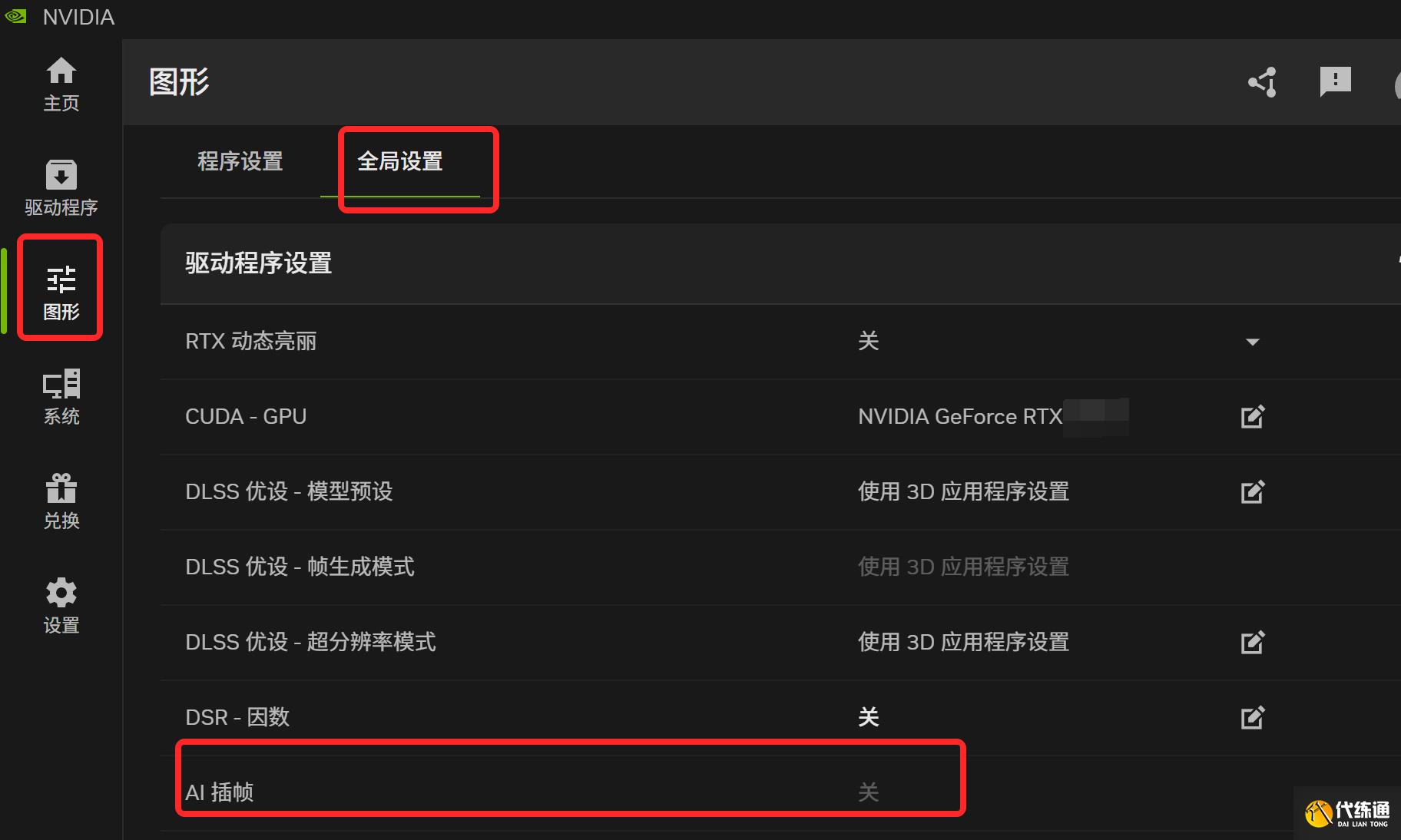 方法一:在“NVIDIA APP > 圖形 >全局設置”中,關閉 AI 插幀。
