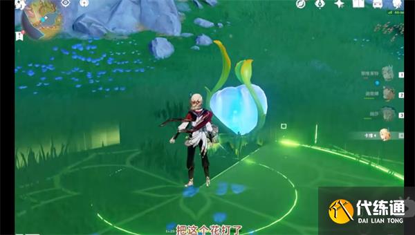 2、向小地圖西北方向走,找到一朵藍色花朵并攻擊。