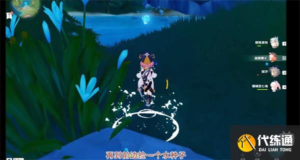 4、沿著寶箱前進,找到被兩只小水珠守護的水元素晶體,擊敗小水珠后移動晶體。