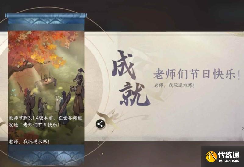 私聊任意玩家發(fā)送“老師節(jié)日快樂!”可達成成就“老師節(jié)日快樂!”并獲得綁玉獎勵。