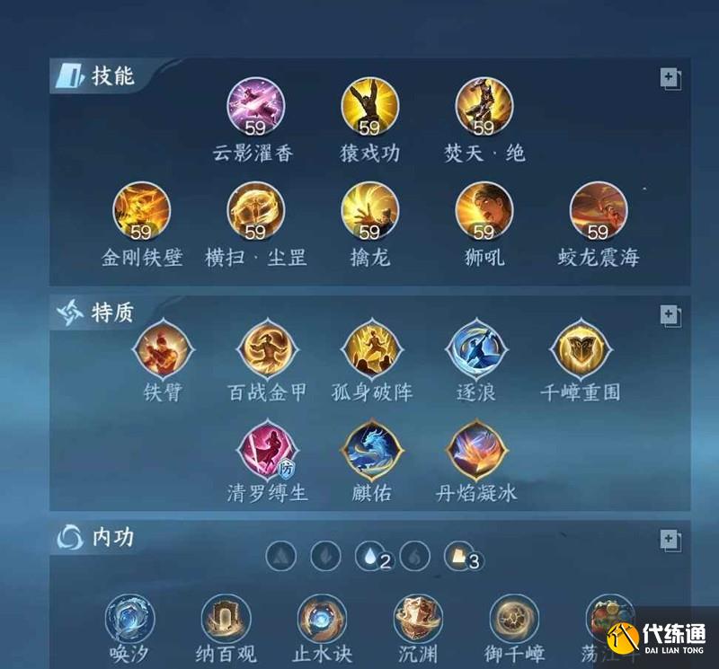 流派:鐵壁+橫掃+擒龍+獅吼+蛟龍震海